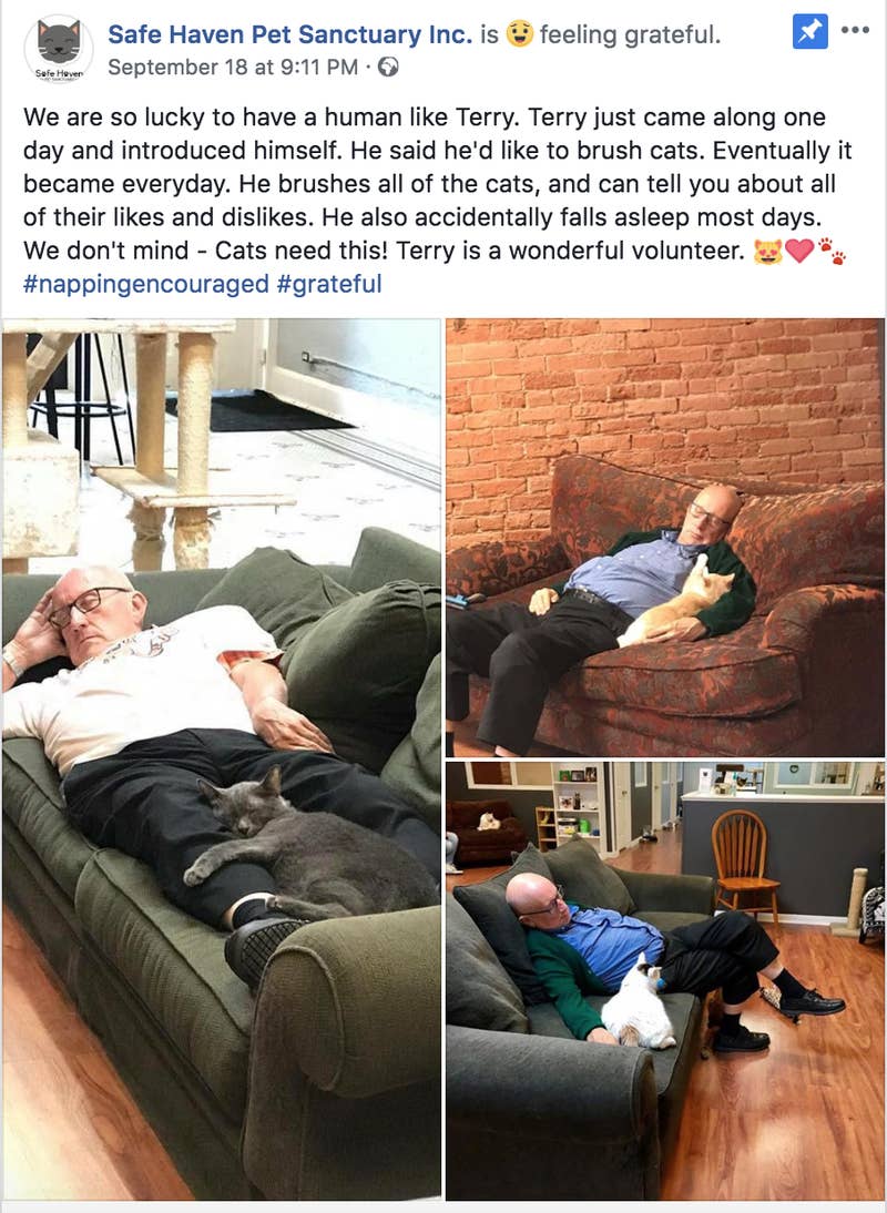 1. This man who had a run-in with a Canada goose: 2. These photogenic pups: 3. This joyful little girl: 4. This cat sanctuary volunteer: 5. This sneaky nephew: 6. This bundled-up kitty: 7. This hero to children everywhere: